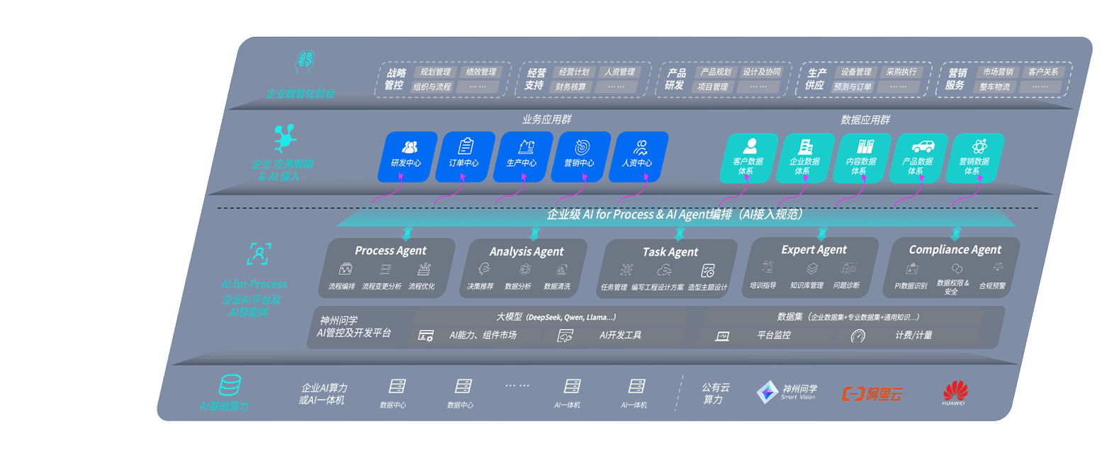 星耀国际问学智车解决方案是一套基于AI技术的汽车行业智能化系统,,覆盖从底层算力到顶层AI应用的全栈方案。。。方案由算力层、、、、模型层和应用层组成:算力层,,,,方案支持多种一体机配置,,具备云端灵活部署、、多云适配以及动态优化计算资源的能力;模型层,,,,星耀国际问学平台版提供了企业级AI应用一站式构建与管理平台,,,支持基于后训练强化技术的汽车企业专属模型的训练、、、评测和运营;应用层,,,,星耀国际问学DeepSeek版提供包括超级员工、、、、智能招采、、、、智能营销、、、智能客服、、、AI for BI等一系列解决方案,,,可助力汽车行业实现数字化转型,,,,让管理更智能、、、、响应更敏捷。。